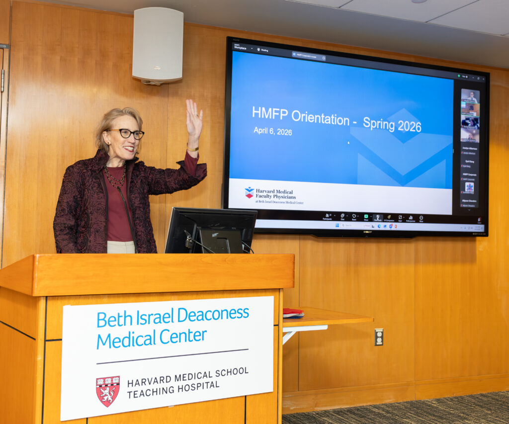 More than 40 new physicians (in-person and virtually) gathered for HMFP’s spring orientation, where they were welcomed to HMFP by President and CEO, Alexa B. Kimball, MD, MPH and other HMFP and BIDMC leaders. The group was among 200+ physicians who joined HMFP since October 1.